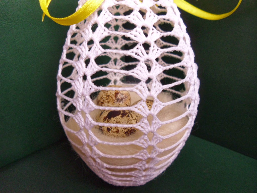 Skoro wszyscy zakładają ze wkładasz jaja gorą lub przez balonik to ja poszukałabym łatwiejszego sposobi i zrobiła szersza podstawę wrzuciła jaja potem to cos na czym lezą jaja . To cos robi za korek i dekoracje w jednym . Tadam . Jajo śliczne i pomysłowe . A napisałabyś mi poi le jest oczek łańcuszka pomiędzy, żeby takie kształtne jajo wyszlo ,nie chce mi sie rozliczać ,bo sie strasznie zmęczyłam wymyślaniem jak te jaja wkładasz :)