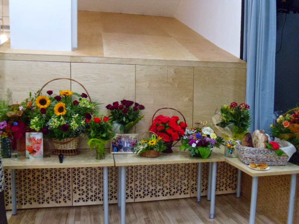 Kolor kwiatków nie przypadkowy, bowiem dekoracje na stołach miały być niebieskie, miały ... bo w ostatniej chwili ktoś zmienił na czerwone ... Podobno był smaczny, w każdym razie tak wszyscy mówili i tego będę bronić jak niepodległości ( bardzo spodobał mi się taki argument, jaki kiedyś wyczytałam u Anette - dzięki - samozwańczo zapożyczam :)