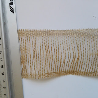 Przygotować jutę, wyrównać brzeg, wyciągnąć pojedynczą nitkę, dla wyznaczenia szerokości paska , u mnie to było ok. 7 cm, wszystko zależy jak duże chcemy kwiatki. Jeśli chodzi o długość, to na jedną sztukę potrzeba ok. 30 cm . Dobrze sobie zrobić przez całą długość materiału i odcinać później ile potrzeba.