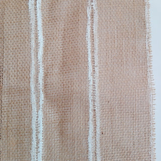 Po obu stronach wzdłuż wyciągniętej nitki i od brzegu wysmarować dość grubo wikolem ( może być Magik, ale jest droższy ), to nam zabezpieczy prucie się luźno tkanej juty.